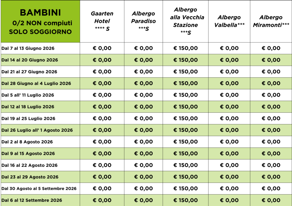 Prezzi Settimana Verde Bambini 2-4 Anni